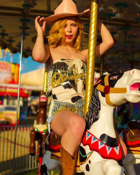 'Rhinestone Cowgirl' Baby Pink Rhinestone Velour Dress