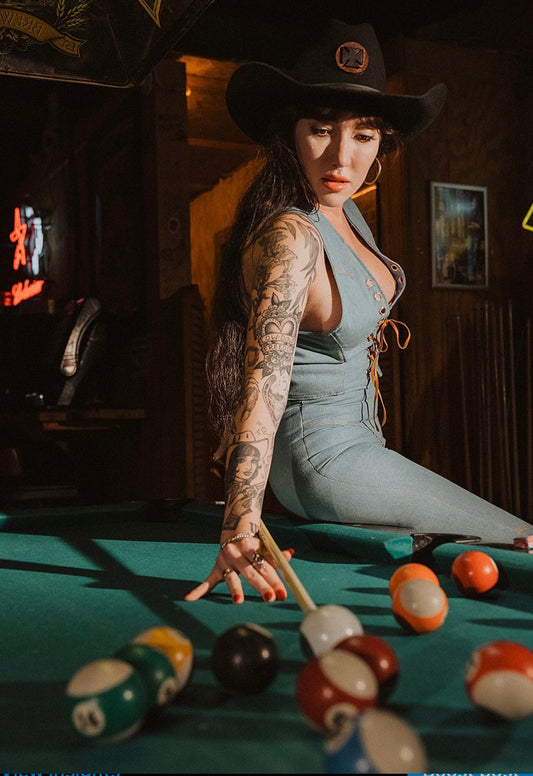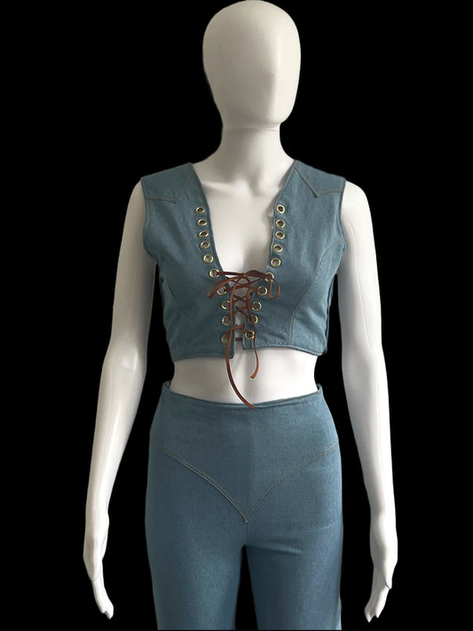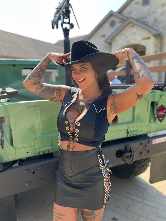 Blue Jean Outlaw Queen Leather and Denim Corset Top - Antoniette