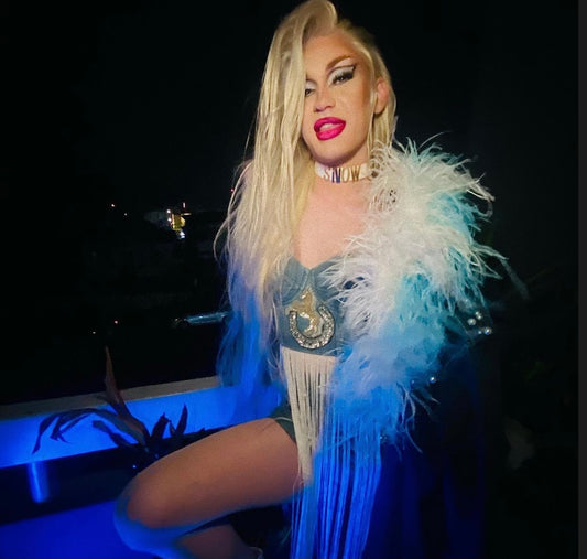 'Va Va Voom' Ostrich Mini Rhinestone Dress