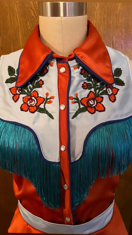 Lurex Pearl Snap Shirt With Floral Embroidery