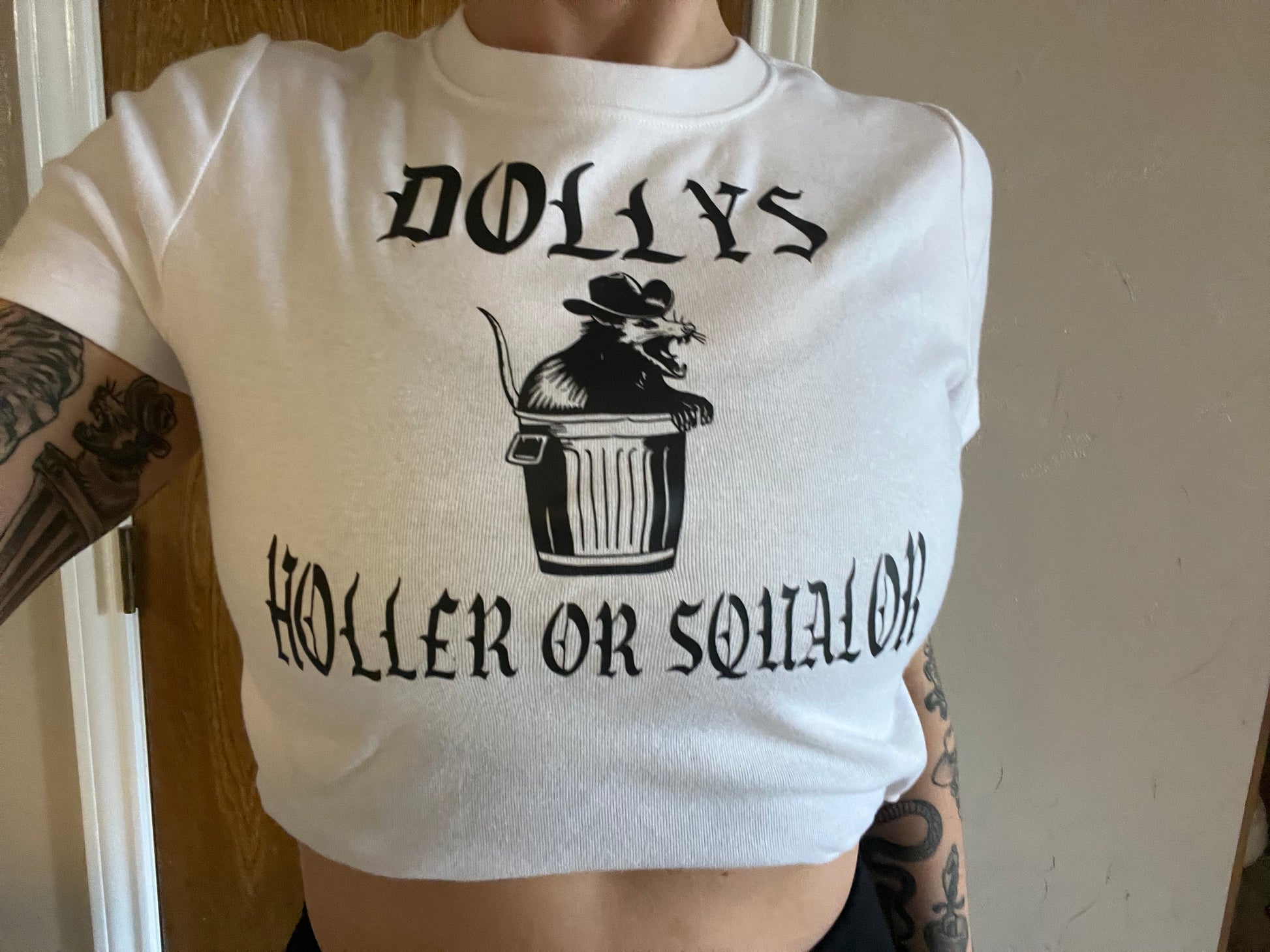 HOLLER OR SQUALOR! Logo design by Sydney Lopez Tattoo. Tee is a cropped fit, 100% cotton with natural stretch.