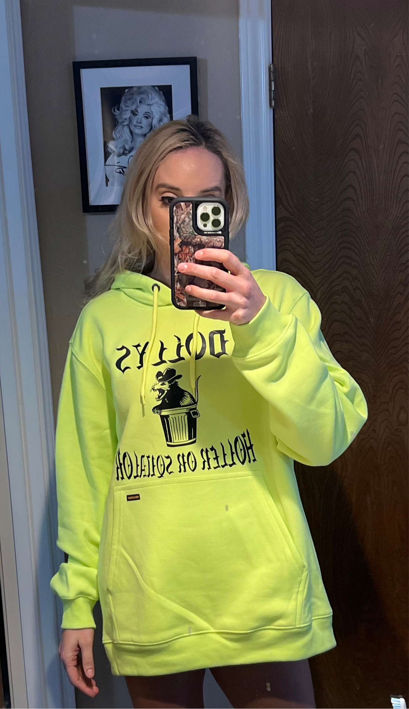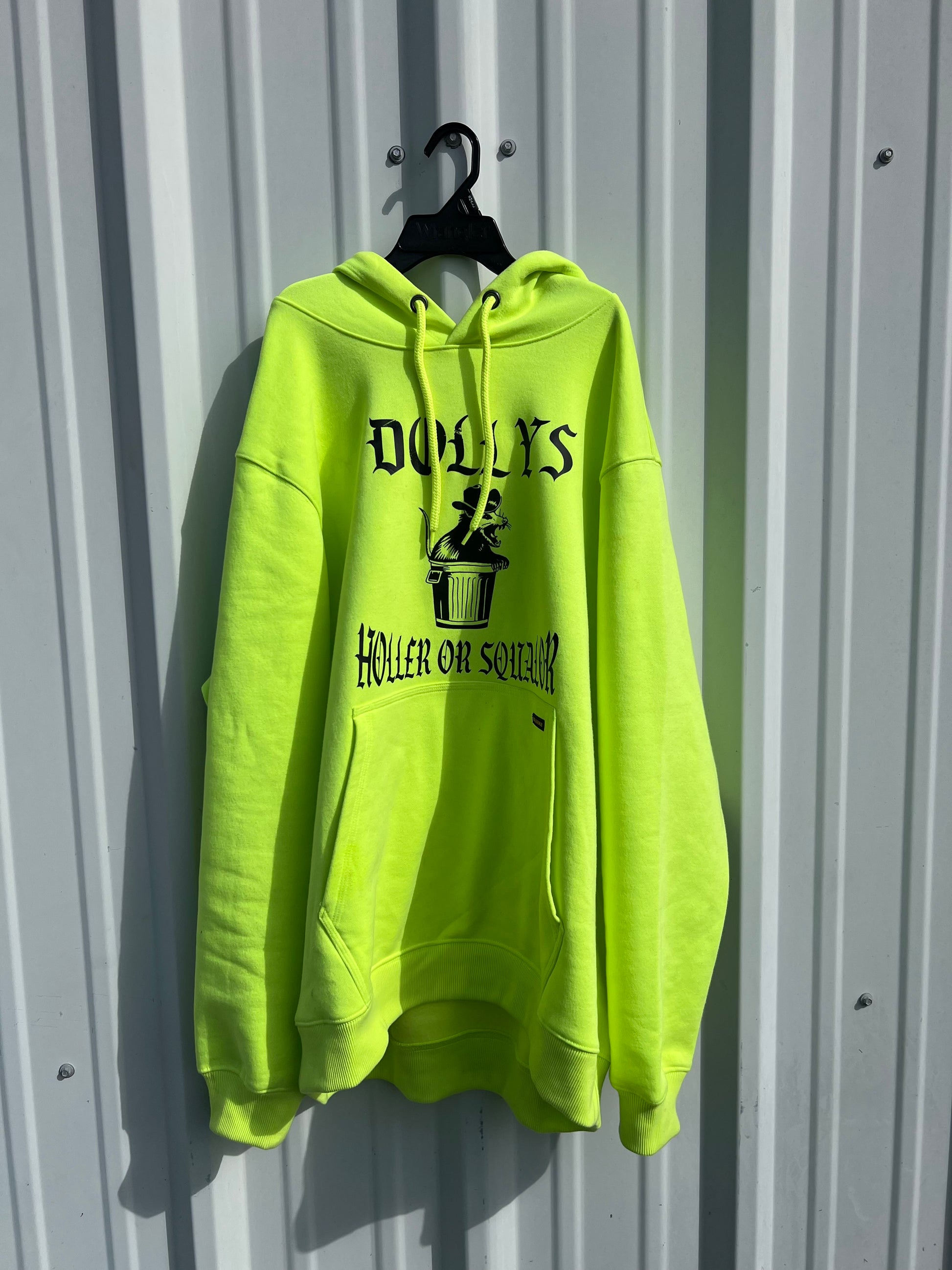 HOLLER OR SQUALOR! Logo design by Sydney Lopez Tattoo. Hoodie is a workwear BRAHMA, fit is oversized size chart is men’s.