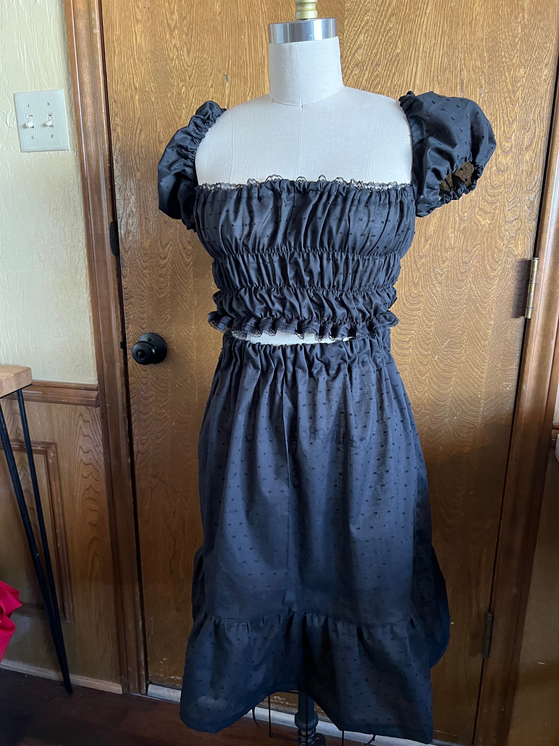 Made to order skirt & blouse set in 100% cotton with eyelet trim.